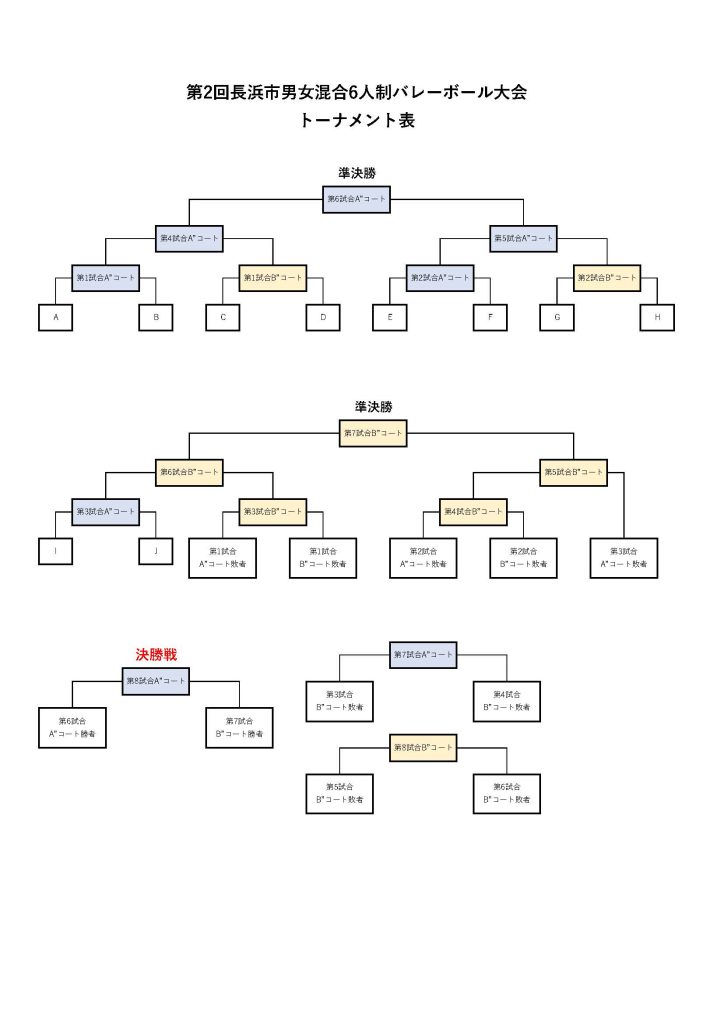 この度は第2回長浜市男女混合6人制バレーボール大会にご参加いただきましてありがとうございます。