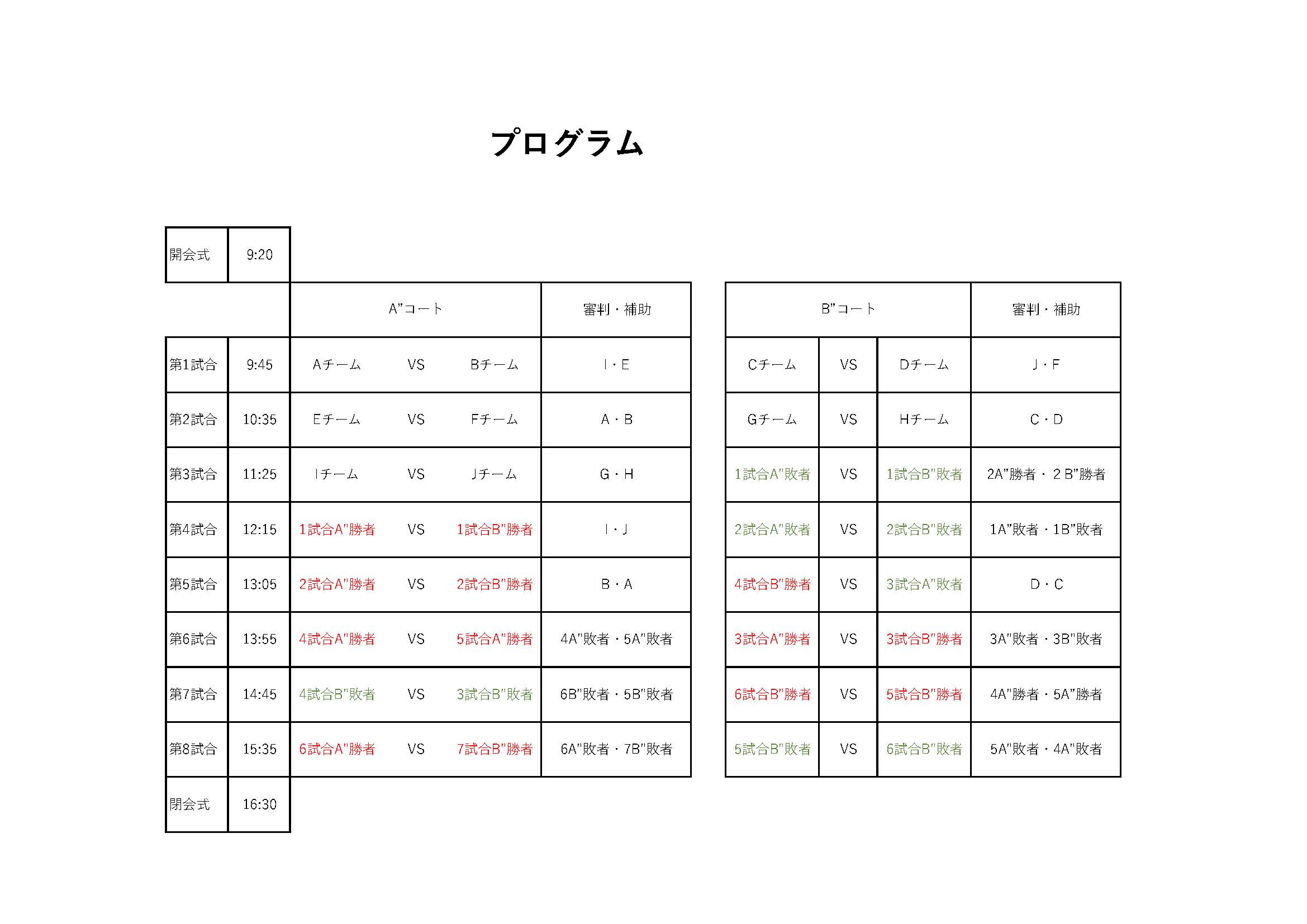 • 審判・ラインズマン・得点はトーナメント表に記載のチームが担当してください。